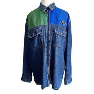 Vintage Tommy Hilfiger Blue Denim Jean Jacket. Tan collar and perfect boxy fit. Heavy quality jacket, 90’s Tommy Hilfiger. All buttons and straps are perfect!