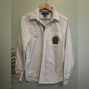 Elevate your style with this classic Tommy Hilfiger denim jacket. Featuring a blue body with a contrasting tan collar, this jacket offers a timeless look. Perfect for casual outings and versatile layering.