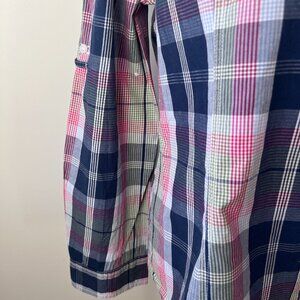🌈 Tommy Hilfiger Blue Pink & Green Plaid/Stripe Cotton Button-Down Versatile XL