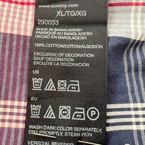 Brighten your wardrobe with this vibrant and classic Tommy Hilfiger button-down shirt! Featuring a cheerful mix of blue, pink, and green in a timeless pattern (plaid), this 100% breathable cotton shirt in Size XL is perfect for adding a pop of color and comfort to any look.