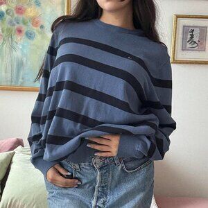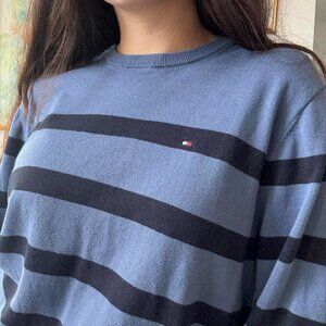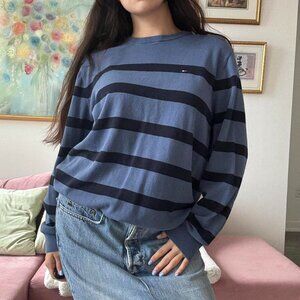 Tags: striped sweater, Tommy knitwear, fall layering, oversized fit, collegiate fashion, cotton pullover, vintage Tommy Hilfiger, preppy style, comfy sweater, everyday essential