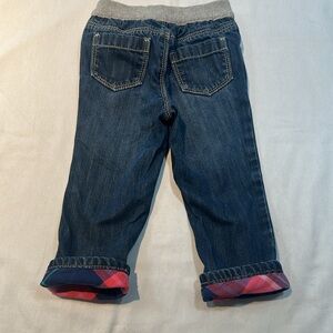 These Tommy Hilfiger jeans showcase a classic blue denim with a playful red plaid cuff detail, offering a stylish twist to a timeless design. The elasticized waistband ensures a comfortable fit, making them perfect for everyday wear.