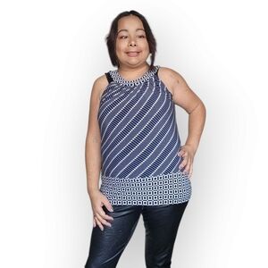 Stylish tank top with geometric pattern. Sleeveless design. Perfect for casual wear.