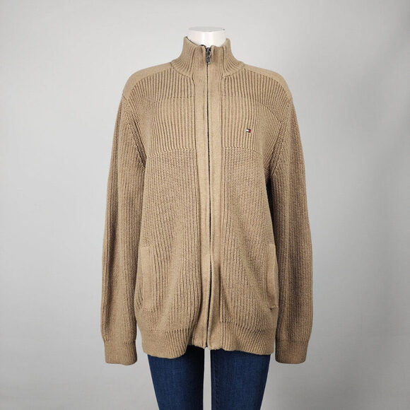 Tommy Hilfiger Brown Cotton Ribbed Knit Zip Up Jacket Size XL