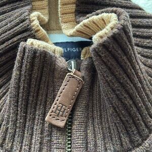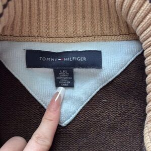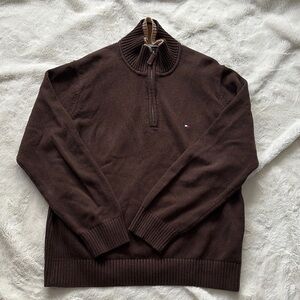 Tommy Hilfiger Brown Quarter-Zip Pullover – Size Large | Classic Preppy Style |