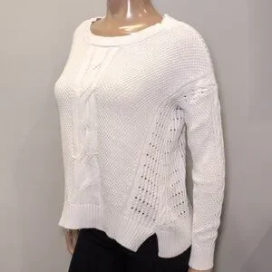 Tommy Hilfiger Cable Knit Sweater Cotton Slouchy Relaxed Fit Open Knit