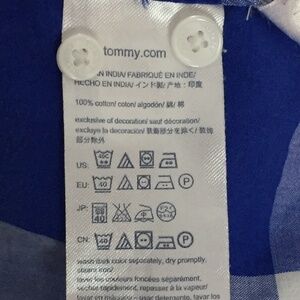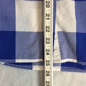 Tommy Hilfiger Classic Fit Shirt / Blouse. Women's Tag Size Small. 100% Cotton. Blue and white extra-large gingham pattern. Long sleeve with single button cuff. Darts mid back for waist shaping.