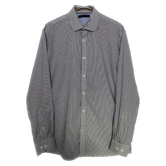 Tommy Hilfiger Collar Shirt Men 16 Large 32/33 Blue White Stripe Poplin Classic