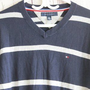 Tommy Hilfiger Cotton Blend Stripe Long Sleeve V Neck Sweater - Size Large