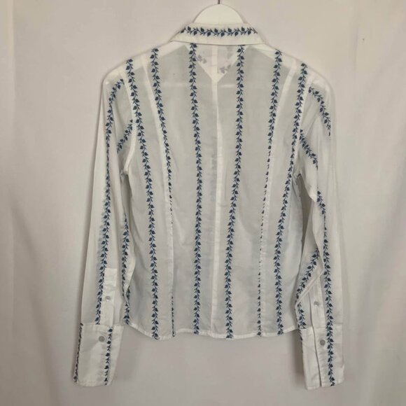 White with blue embroidery