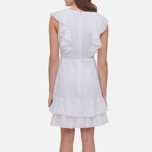 Show off some feminine flair: Tommy Hilfiger's breezy fit-and-flare dress styled with dots, stripes and flowing ruffles.