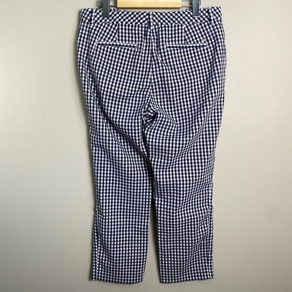 Tommy Hilfiger Dark Navy Gingham Pattern Crop Pants Slim Leg Size 10 Pockets