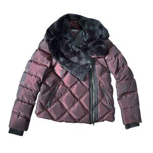 Tommy Hilfiger Deep Purple Iridescent Puffer Jacket • Faux Fur Collar Short M