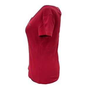 Tommy Hilfiger Deep Red Vintage V-Neck Short Sleeve T-shirt With Tommy Hilfiger Logo.