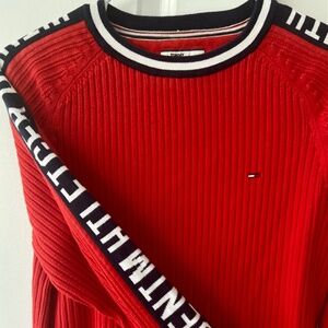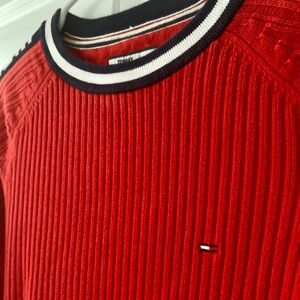 Red Y2K Hilfiger Denim Sweater in excellent condition. I believe this is actually a men’s sweater, so the tag says XS but fits like a women’s standard medium.