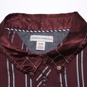 Tommy Hilfiger Denim Long Sleeve Button Front Shirt Shiny Nylon Blend Women XLTG
