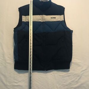 Tommy Hilfiger men’s down and feather vest in size large, Vintage red tag. Color blocked in blue, black and white. Worn once, in like new condition.