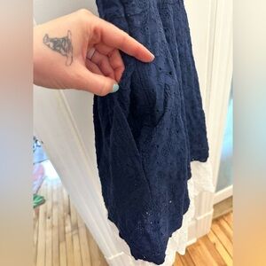 Excellent condition. Very cute dress with pockets! Is lined and has a white trim at the bottom.