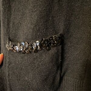 Tommy Hilfiger Embellished Sequin Trimmed Black Cardigan Pockets Women's…