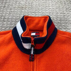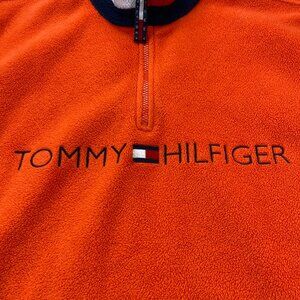 Tommy Hilfiger Fleece Sweater Pullover Men Large L Orange Box Logo Retro Preppy