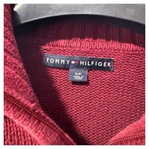 Tommy Hilfiger Full-Zip Sweater Mens Size small Red With Navy Stripe Cotton