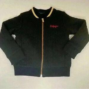 Tommy Hilfiger Girls Cable Knit Bomber Jacket in Black embroidered logo size 5