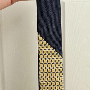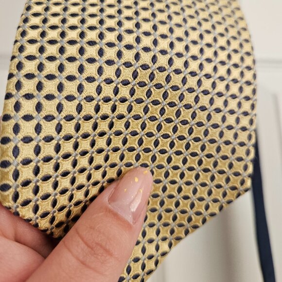 Nice geometrical pattern. Material - 100% silk. Appoximately 58" long and about 3.5" wide. This tie is in very good condition with minimal wear or most likely no wear at all. See photos for condition and measurements.