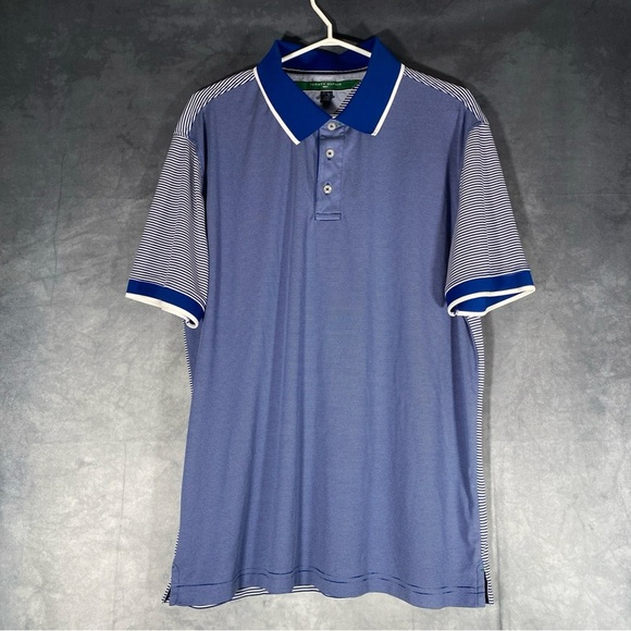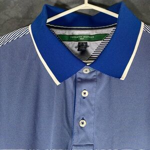 Tommy Hilfiger Golf Polo Shirt Sz L Blue Striped Casual Short Sleeve Pickleball