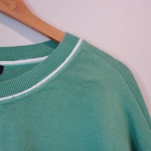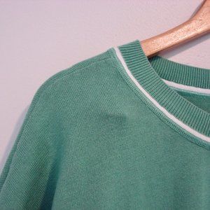 Tommy Hilfiger Green Knit Tunic Sweater Top Sporty With White Stripe Rounded Hem ~ Size XL ~ 100% Cotton