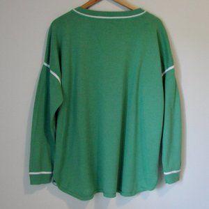 Tommy Hilfiger Green Knit Tunic Sweater Top Sporty White Stripe Rounded Hem XL