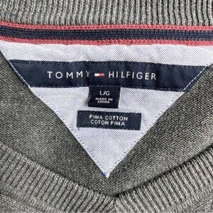 Tommy Hilfiger Grey Pima Cotton Knit V Neck Pullover Light Sweater L