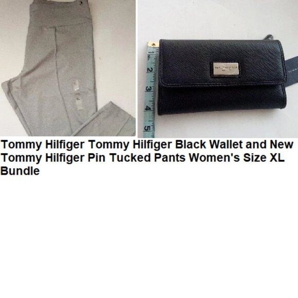 Tommy Hilfiger Grey Pin Tucked Pants WMN XL & Tommy Hilfiger Black Wallet Bundle