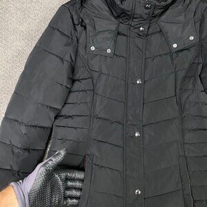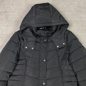 Tommy Hilfiger Hooded Long Puffer Coat Jacket Parka Women's Medium Black Quilted