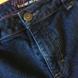 Very good preowned condition, dark blue denim, boot cut/semi flared jeans by Tommy Hilfiger. These are really nice quality jeans; composition is almost entirely cotton (98%). Amazing.