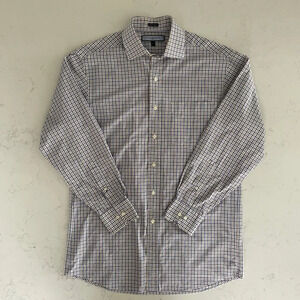 Tommy Hilfiger Ithaca LS Button Down Check Print Dress Shirt Blue Wht Tan Sz 15