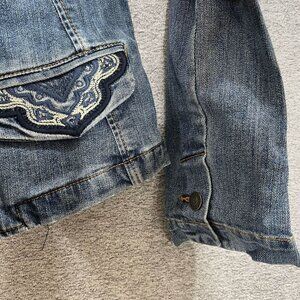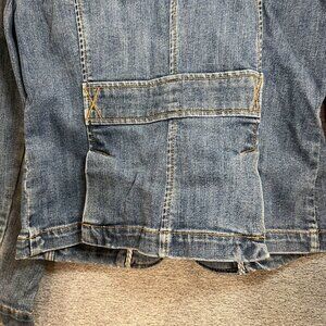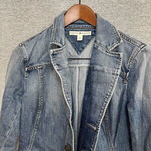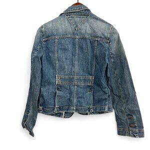 Tommy Hilfiger Jean Jacket Women M Blue Cropped Medium Wash Button Up Denim