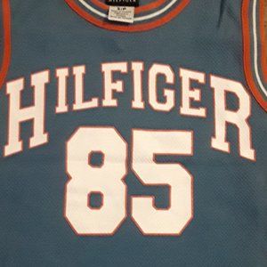 Old school vibes/vintage Tommy Hilfiger sleeveless jersey/tank top. The pictures definitely does not do it justice. Unique and rare. Size Small but fits more like a XS- a little short and little tight around the chest if you are large chested. Never worn and in mint condition. One site same shirt but different color(s) it went for $90 https://sobump.com/products/nn6sJRacZv-Vintage-Tommy-Hilfiger-Basketball-Jersey.