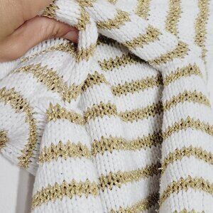 Tommy Hilfiger Kid's White Gold Stripe Cotton Blend Button Detail On Shoulder Sweater Size 4T