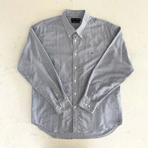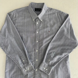 Tommy Hilfiger LS Striped Button Down 100% Cotton Shirt Blue + White Sz XL