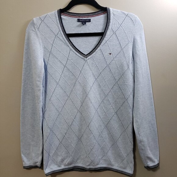 Tommy Hilfiger * Light Blue Argyle Knit Sweater S