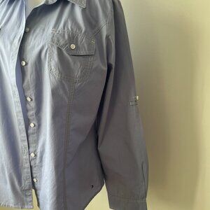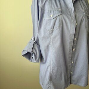 Discover the timeless appeal of this Tommy Hilfiger light blue button-down shirt, a true wardrobe essential! Crafted from 100% breathable cotton, this Size XL shirt offers both comfort and classic style, perfect for any season.