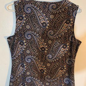 Very pretty Tommy Hilfiger camisole in perfect condition! Medium size, paisley patterns, blue, pink and white, black. 95% polyester & 5% spandex. The fabric is light and very pleasant to wear!