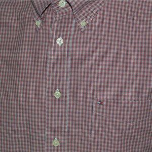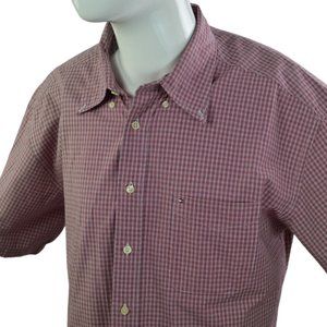 Tommy Hilfiger Men sz XL Plaids Windowpane Short Sleeve Shirt Buttons Down Red