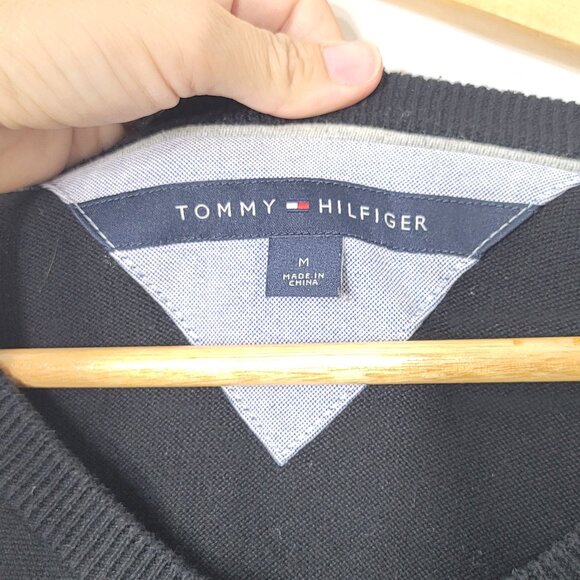 Tommy Hilfiger Mens Black White 100% Cotton Blend V-Neck Pullover Sweater Size M