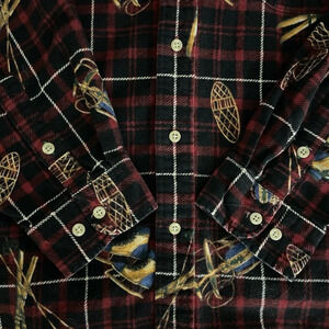 Tommy Hilfiger Men’s Button Down Flannel Shirt Size XL Winter Plaid Red Black