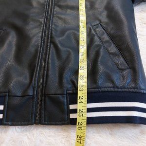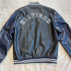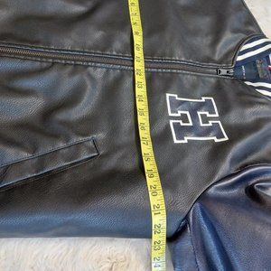 Check out this Tommy Hilfiger Men's Dark Navy H Logo Vegan Leather Bomber Jacket is in excellent pre-owned condition with no rip no stains on it.