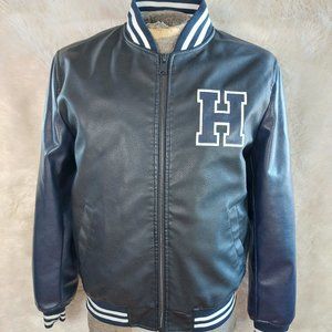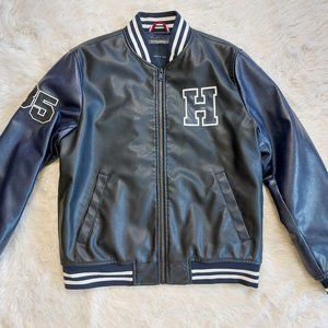 Tommy Hilfiger Men's Dark Navy H Logo Vegan Leather Bomber Jacket Size M