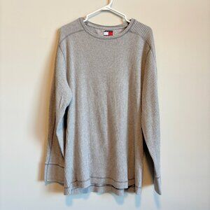 Tommy Hilfiger Men's Large Long Sleeve Ribbed Thermal Gray Layering 90s Vibe