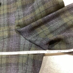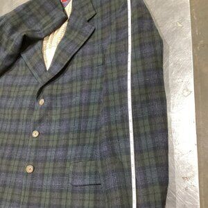 Add timeless sophistication to your wardrobe with this vintage-inspired Tommy Hilfiger blazer. Featuring a bold green and navy plaid pattern (Black Watch style), this jacket brings heritage charm to any look. Ideal for both casual layering or dressed-up occasions.