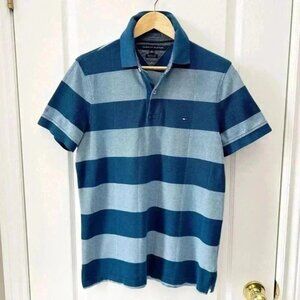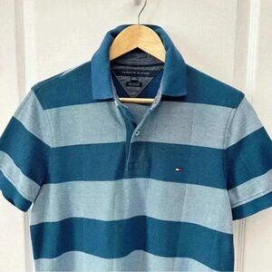 Tommy Hilfiger Mens Polo Shirt Custom Fit Short Sleeves Teal Green Stripes Small